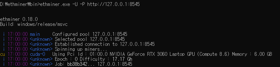 이며 ethmine을 이용하여 테스트 해볼수 있다.