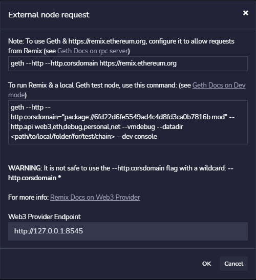 ENVRONMENT에서 WEB3 Provider를 선택한다.